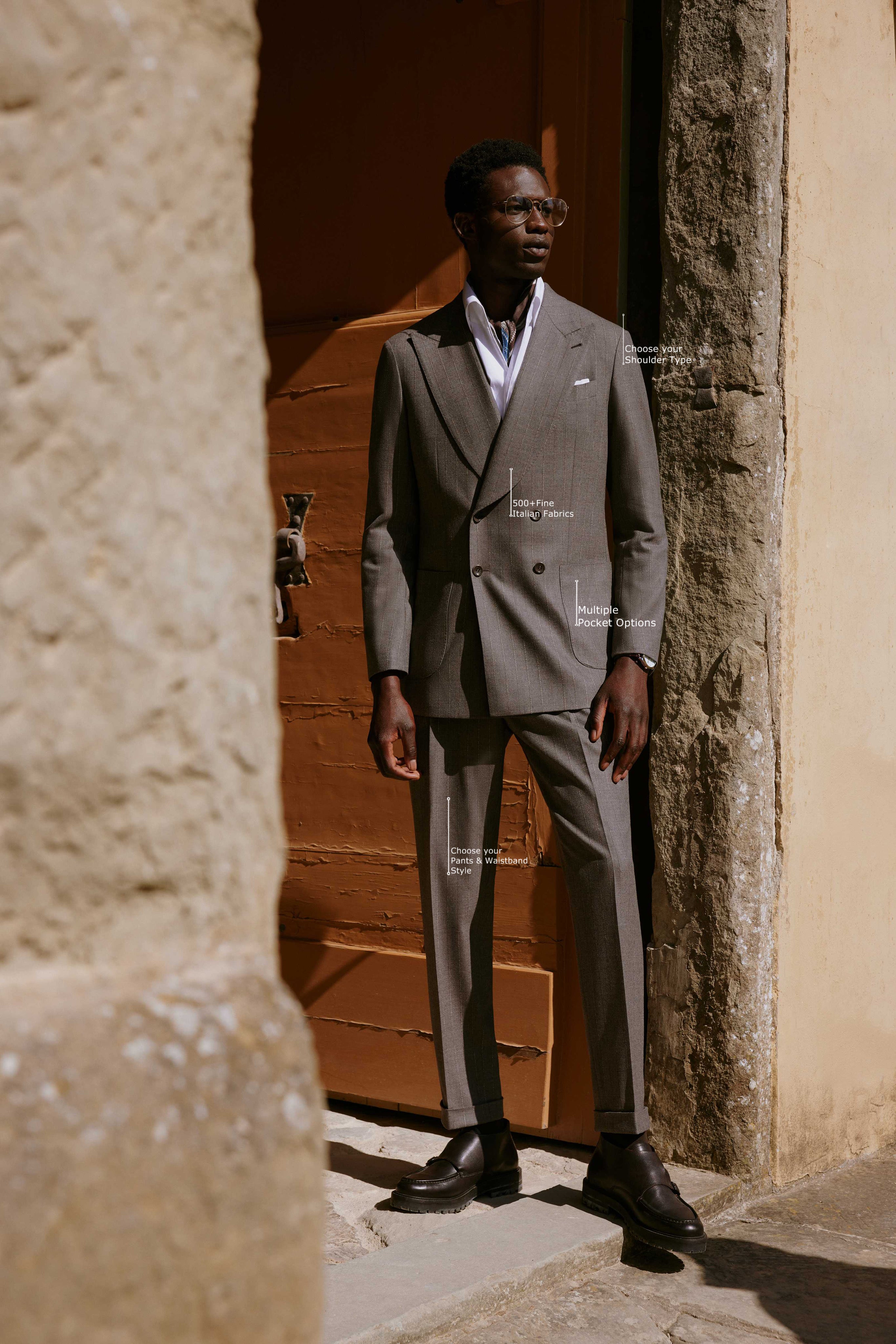Bring out your inner stylist & create your own perfect look. Choose from countless custom suit design options in over 500 fine Italian fabrics—all with your personalized touch. Get your custom suit designed, crafted and delivered in 2-3 weeks
